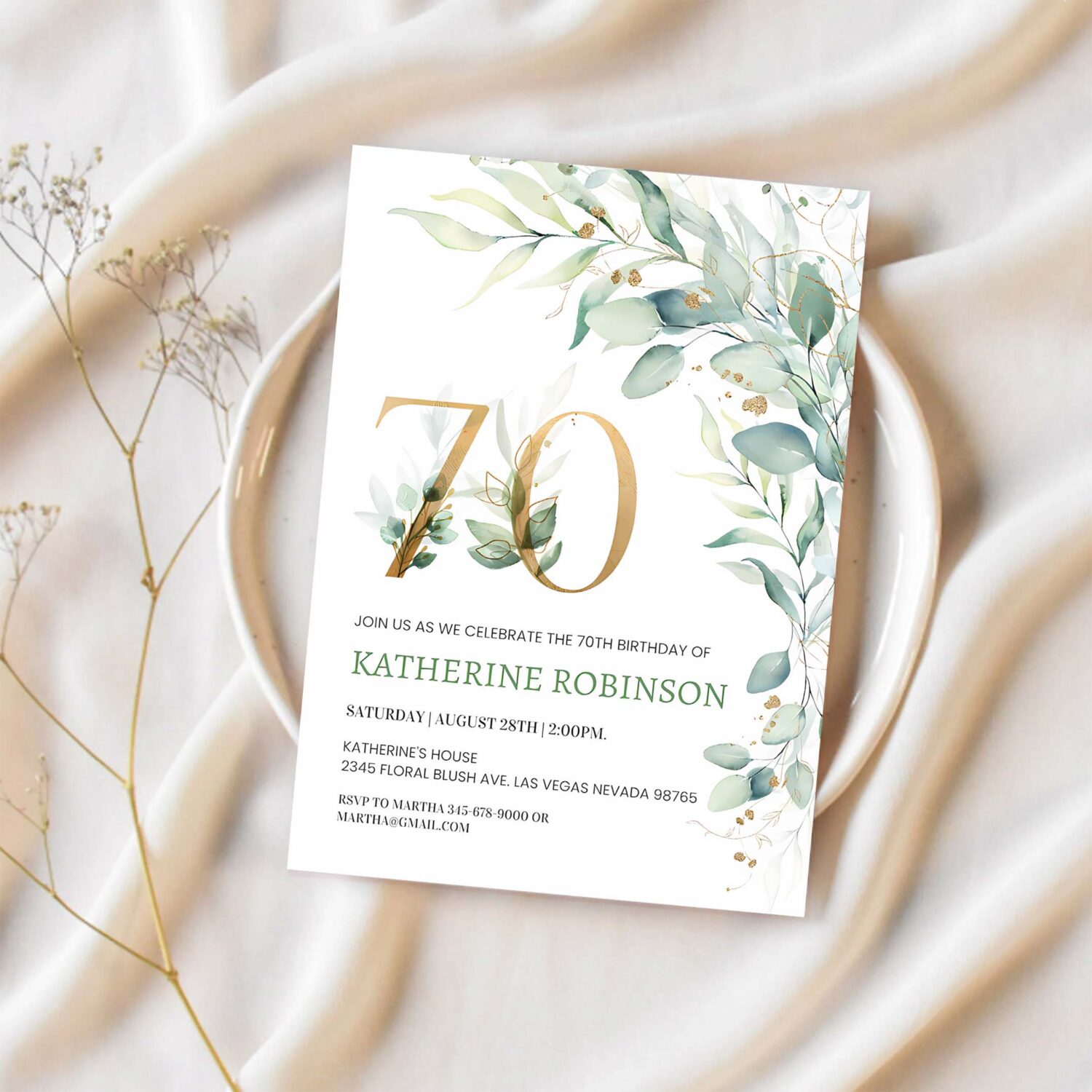 Adult Birthday Invitation, 70th birthday Invitation Brunch Invitation 70th birthday invite for her Adult Birthday
