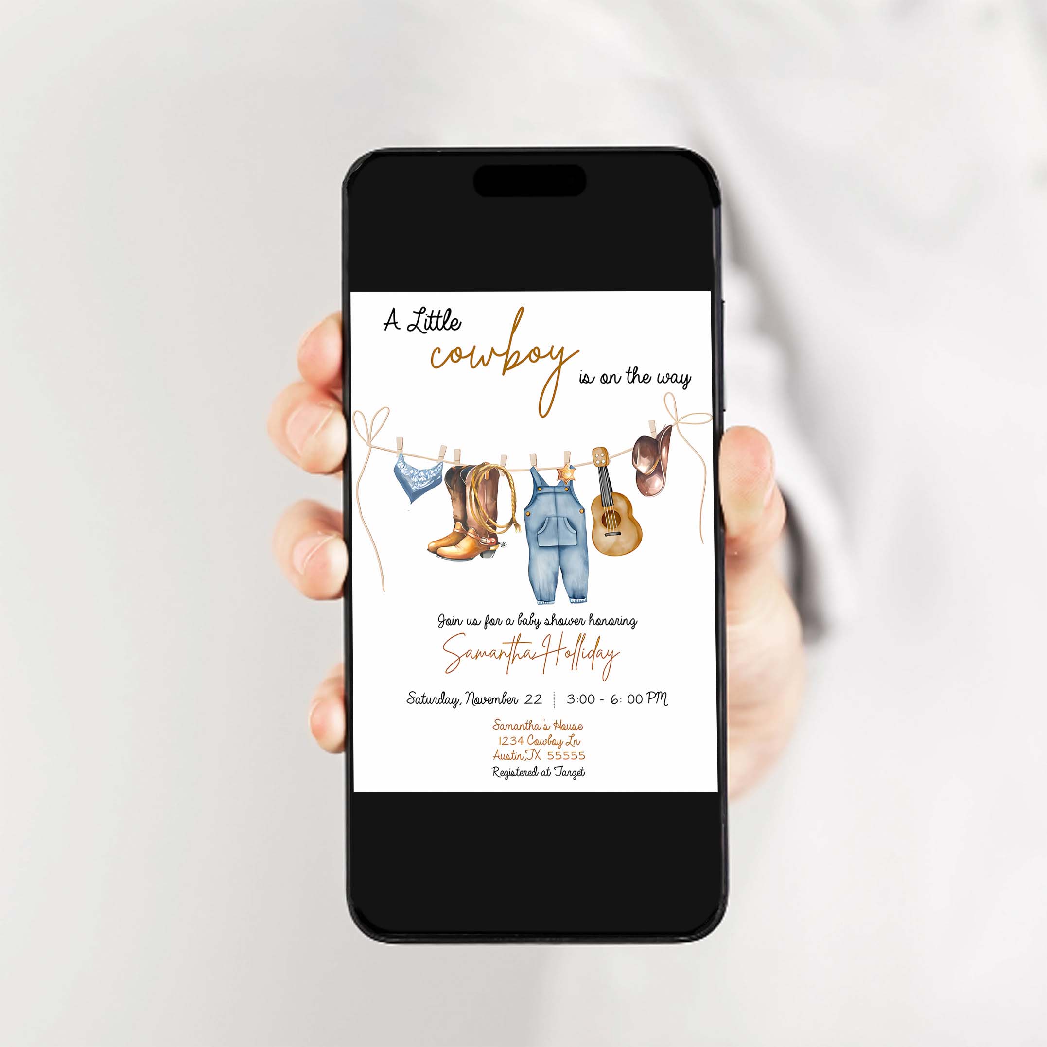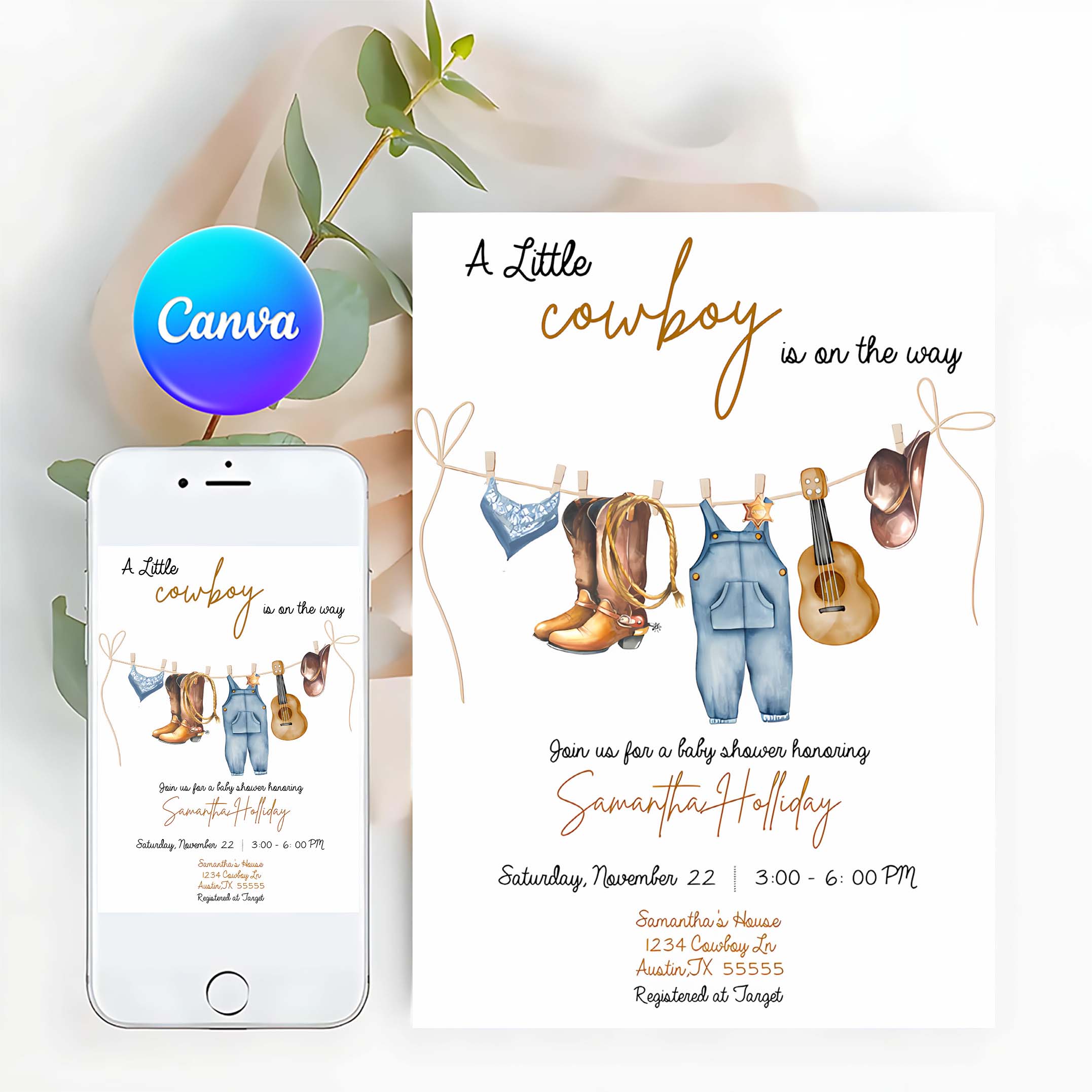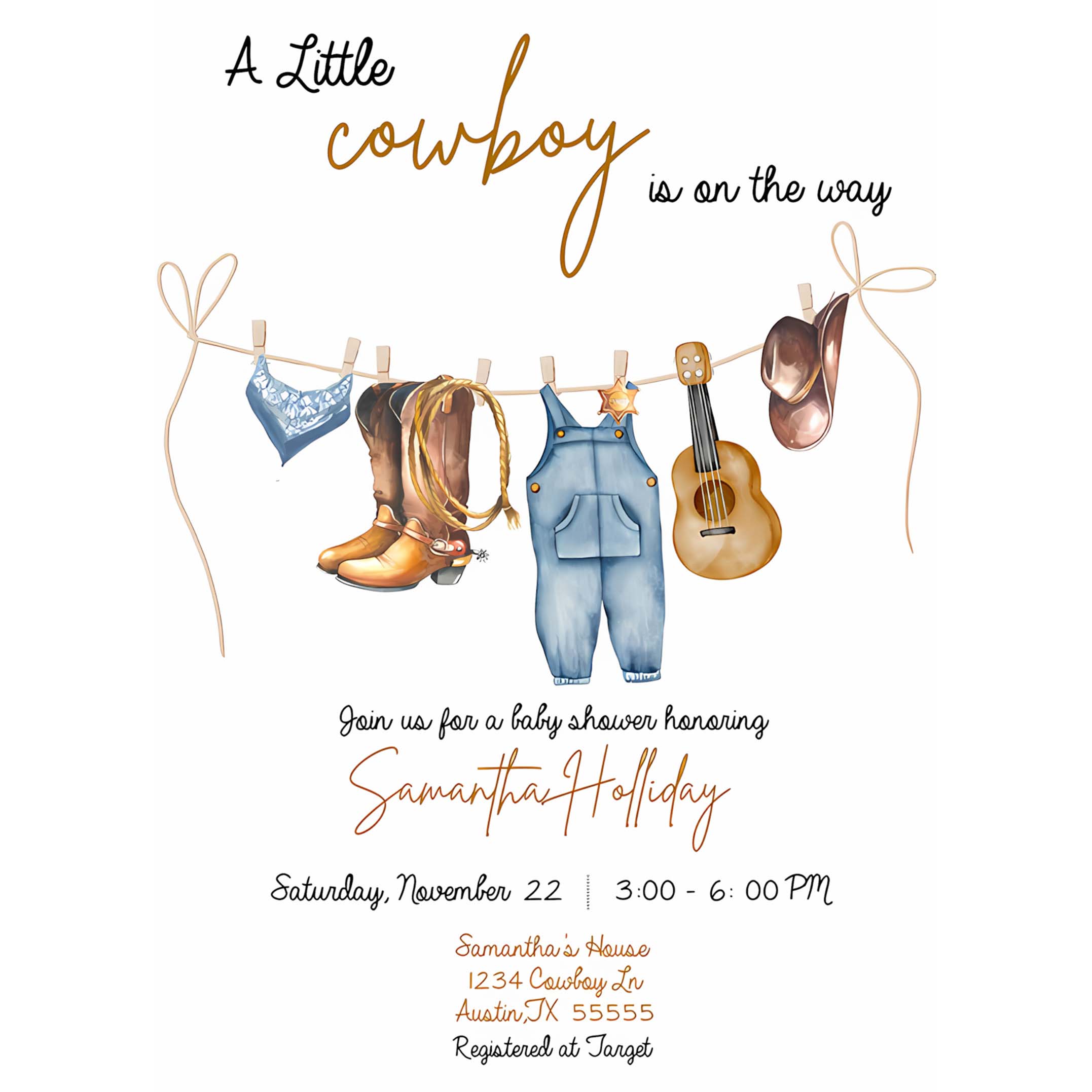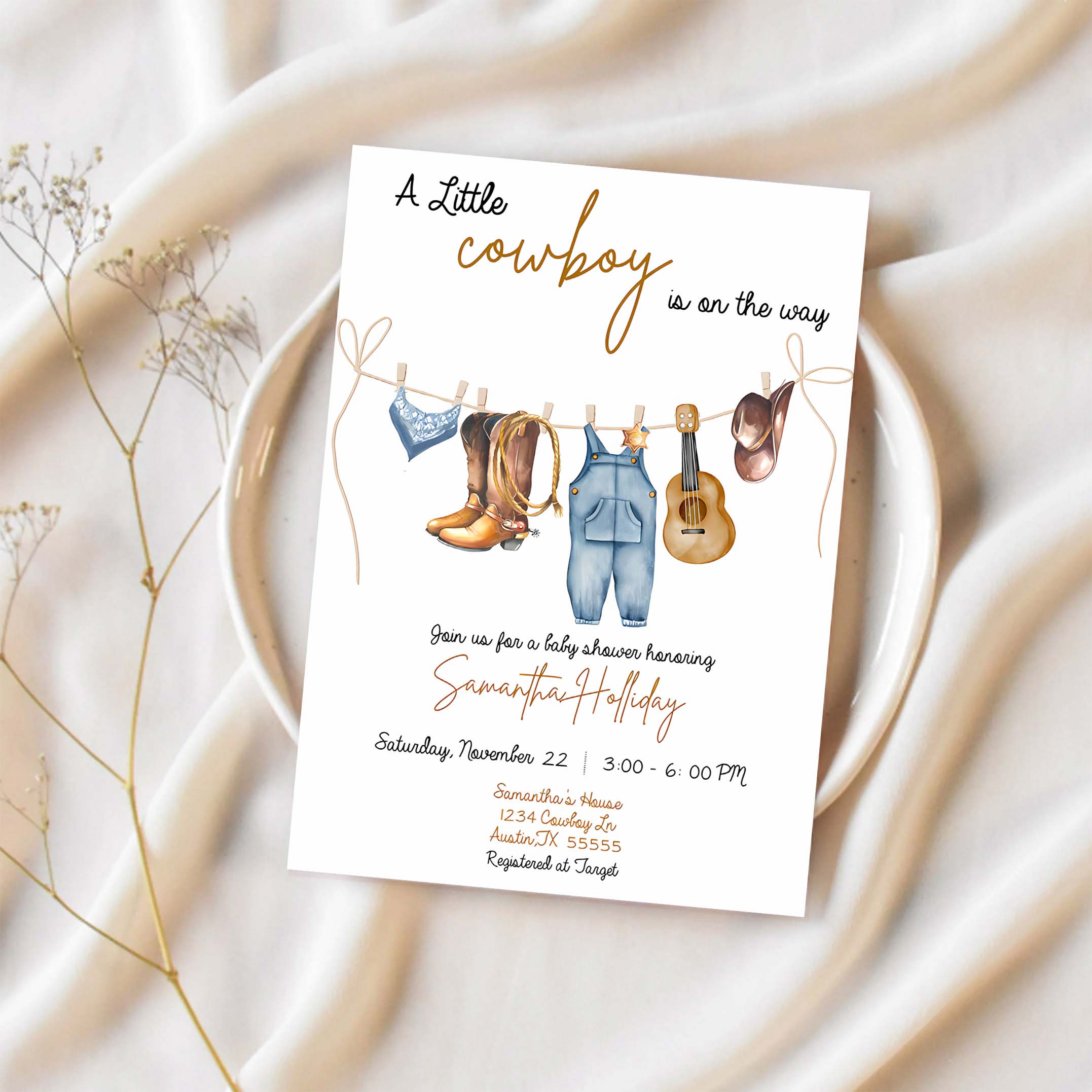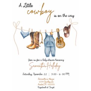 Cowboy Invitation, A Little Cowboy is on the Way Baby Shower Invitation, Cowboy Baby Shower Invitation
