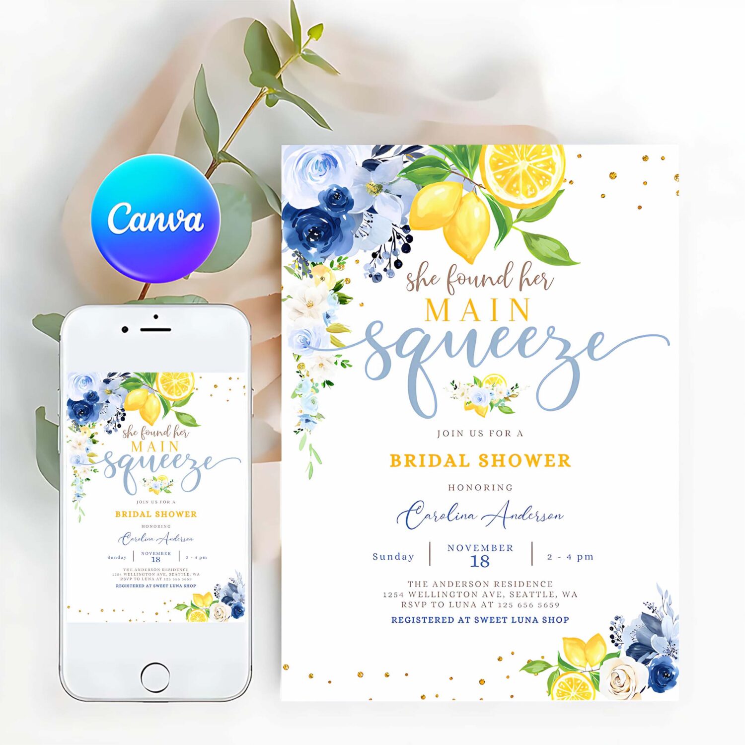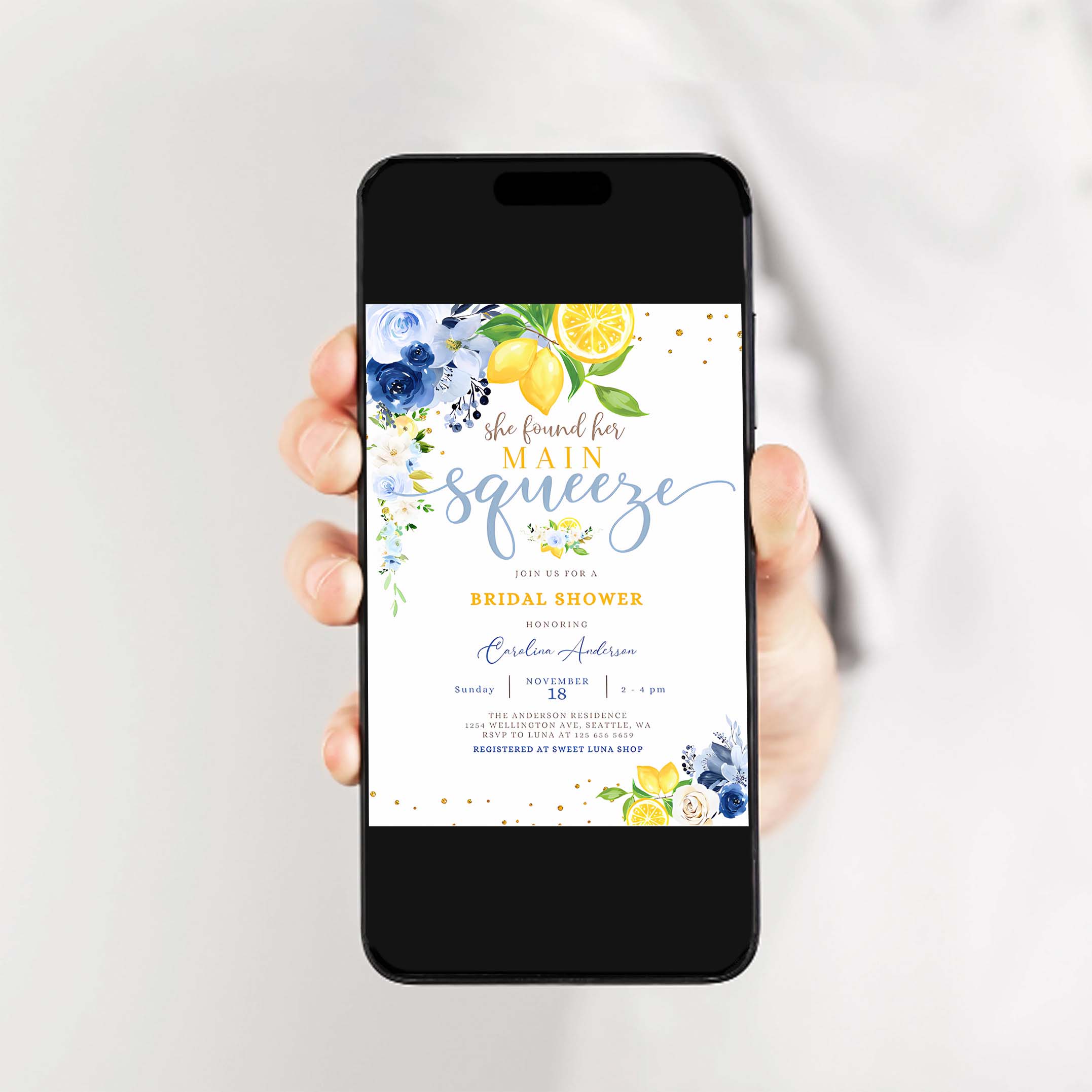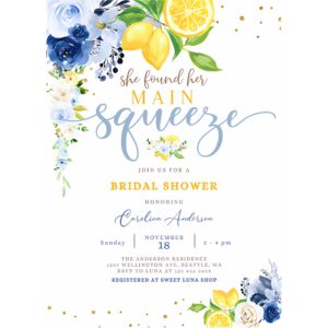 Lemon Invitation, Blue Lemon Bridal Shower Invitation