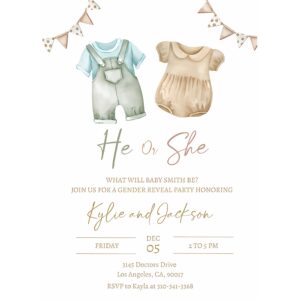 Boho Invitation, Boho Gender Reveal Invitation, Baby Clothes Gender Reveal Party Invite