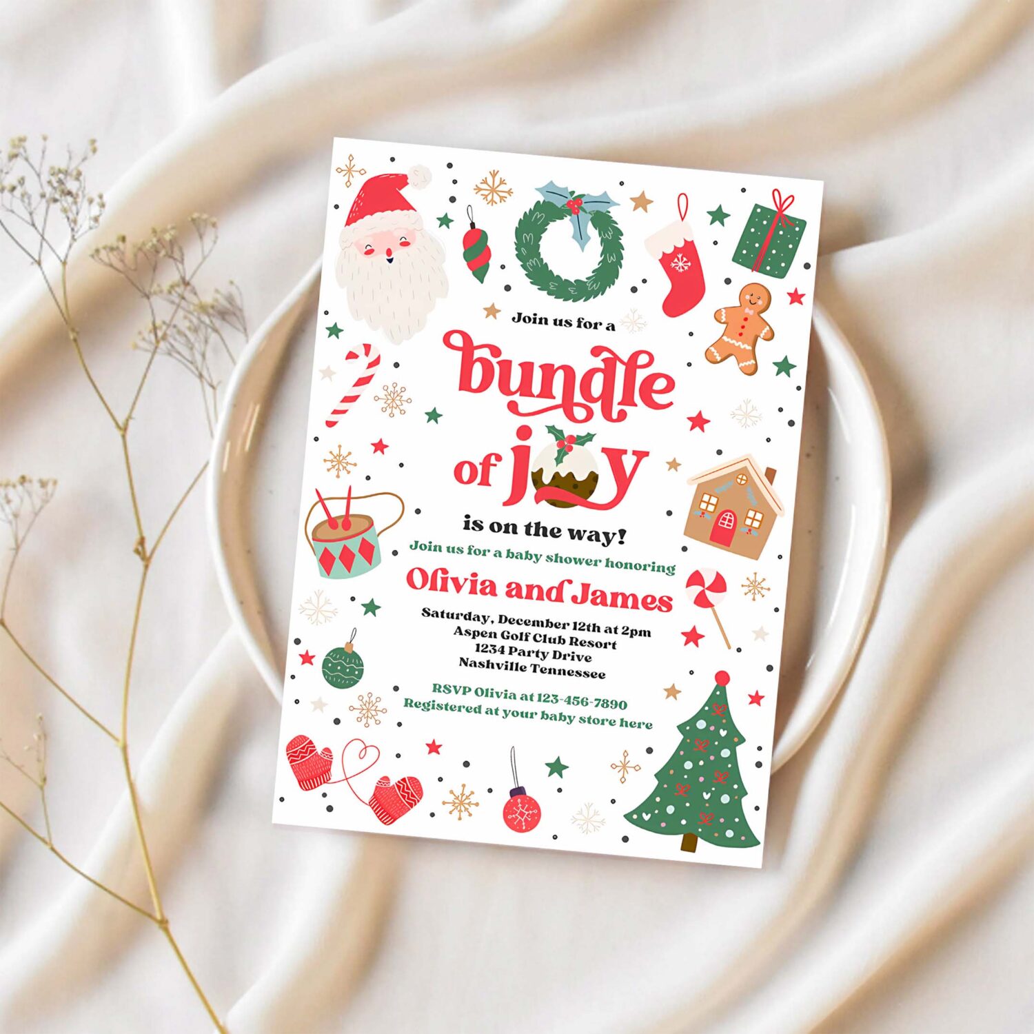 Bundle Of Joy Invitation, Bundle Of Joy Baby Shower Invitation Christmas Baby Shower Invitation Santa Baby Shower Christmas Tree Shower