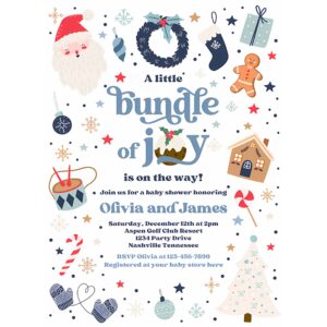 Bundle Of Joy Invitation, Bundle Of Joy Baby Shower Invitation Christmas Baby Shower Invite Santa Baby Shower Boy Blue Christmas Shower