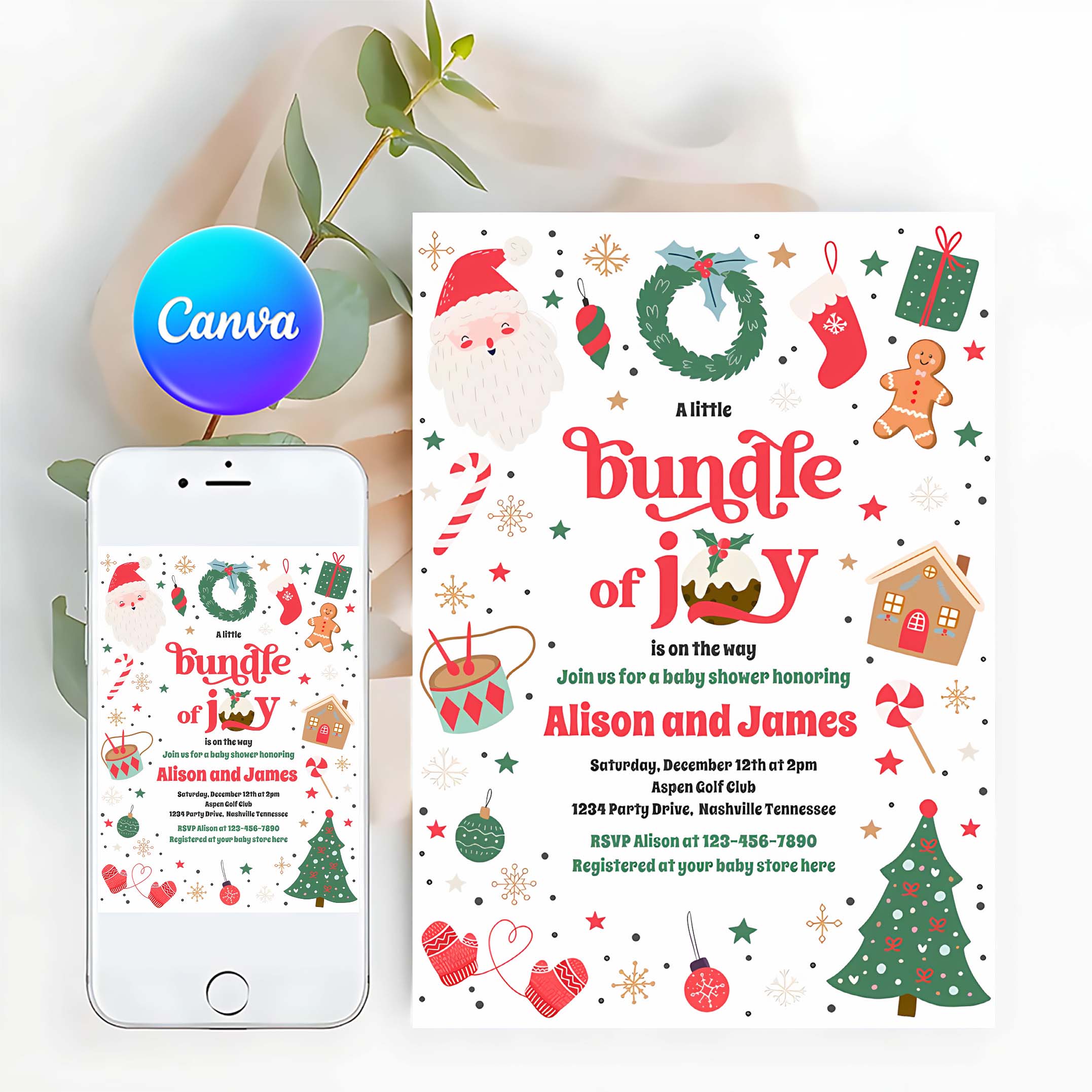 Bundle Of Joy Invitation, Bundle Of Joy Red Traditional Winter Baby Shower Invitation