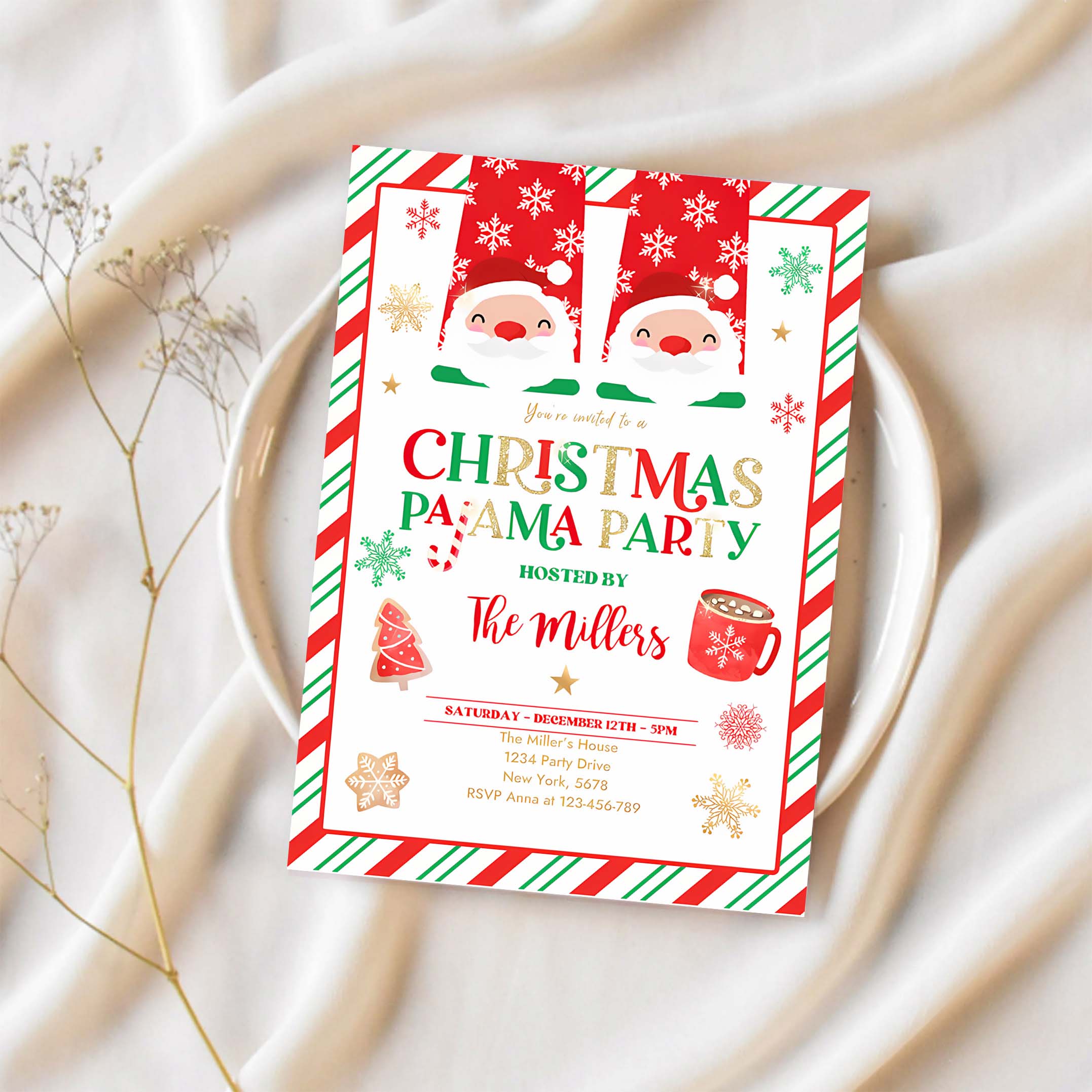 Pajama Party Invitation, Christmas Pajama Party Invitation Red And Gold Holiday Pajama Party Invitation Holiday Christmas Pajama Party