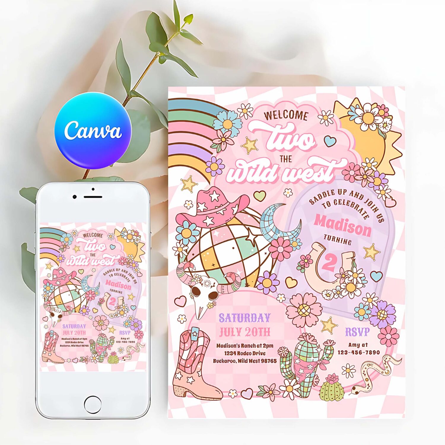 Cowgirl Invitation, Cowgirl Welcome Two The Wild West 2nd Birthday Invitation
