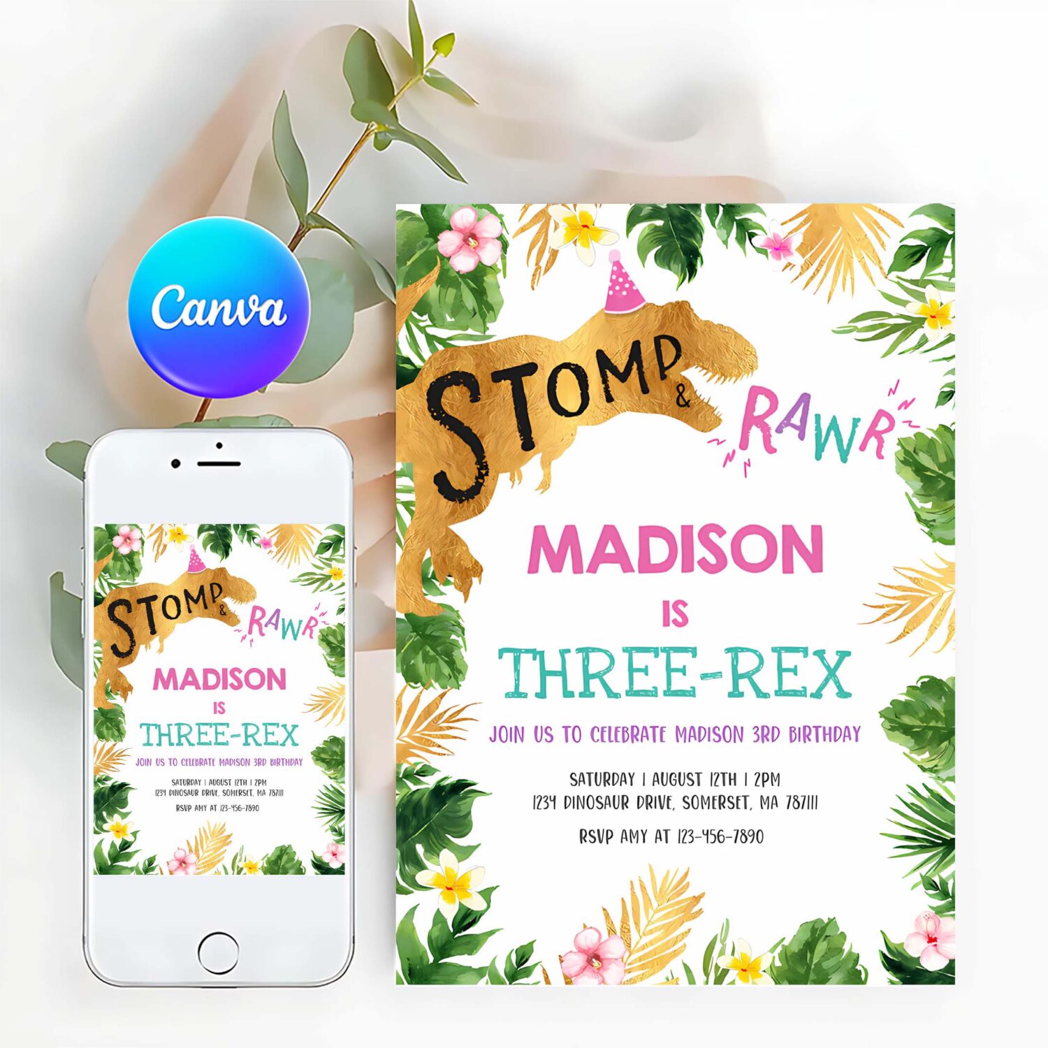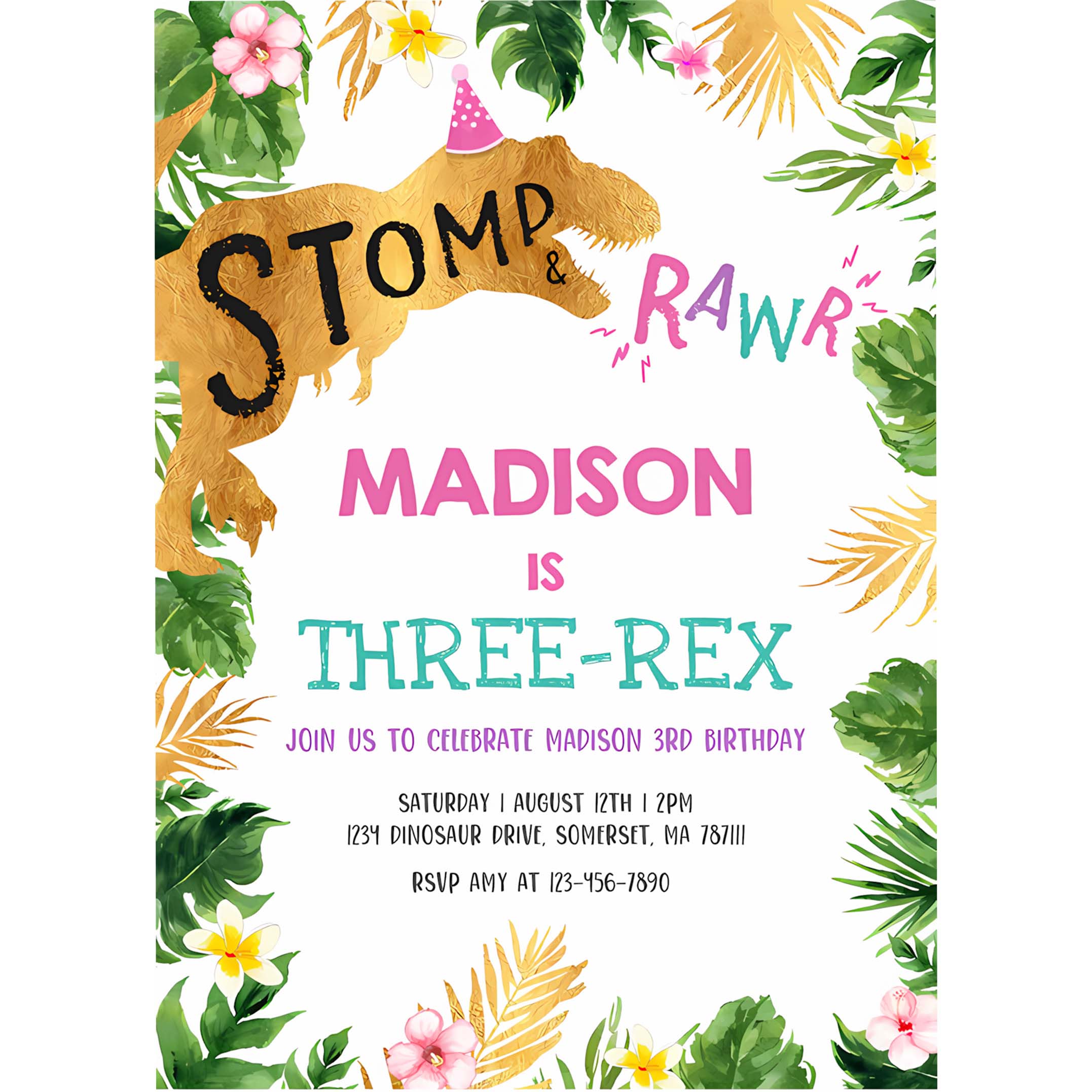 Dinosaur Invitation, Dinosaur 3rd Birthday Invitation