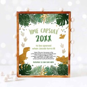 Dinosaur Invitation, Dinosaur Time Capsule First Birthday, Birthday Party, Green Gold Boy Party, 1st Birthday Invitation