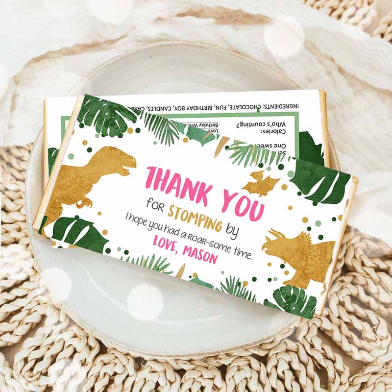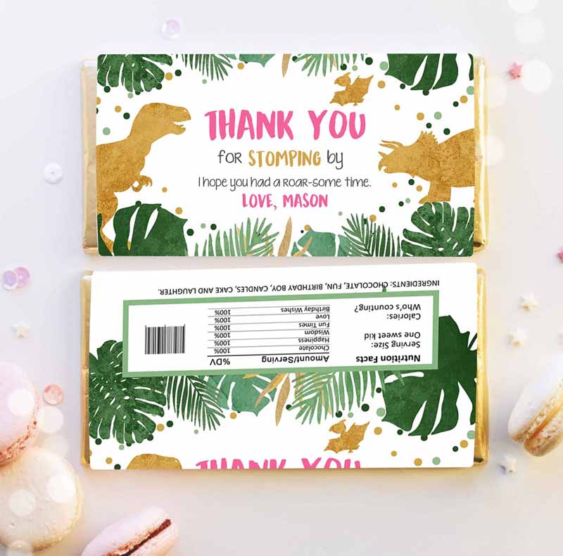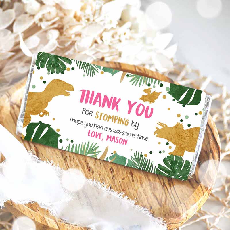 Dinosaur Invitation, Dinosaur Treat Bag Toppers Girl Pink Gold Dinosaur Birthday Invitation