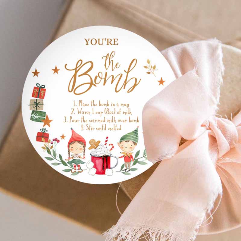 Elf Hot Chocolate Bomb Tag Bomb Instructions Cocoa Favor Tags Invitation