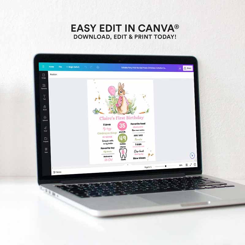 After purchase you will receive an email with a link to download TXT file containing instructions and links to your editable Canva template. Canva is an online design site that is free to use. If you do not have a Canva account you will need to sign up for a free account in order to save and edit your work. Please get in touch if you have any difficulty whatsoever in receiving, editing or printing your files.