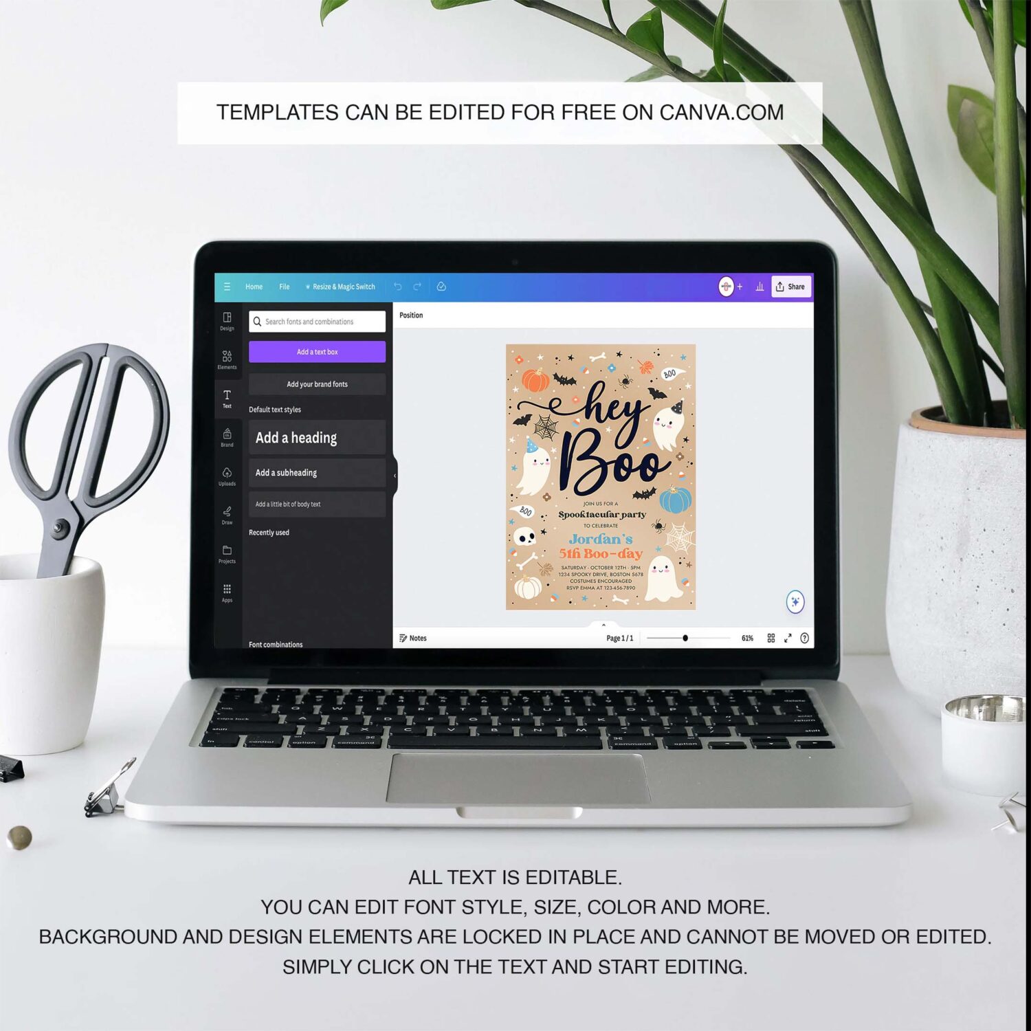 Hey Boo Invitation, Halloween Vintage Blue Ghost Birthday Invitation Hey Boo Cute Ghost Birthday Party Spooktacular Halloween Party