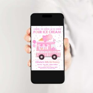 Ice Cream Invitation, Ice Cream Truck Birthday Invitation, I scream You Scream We All Scream Four Ice Cream 4th Birthday Party Invite