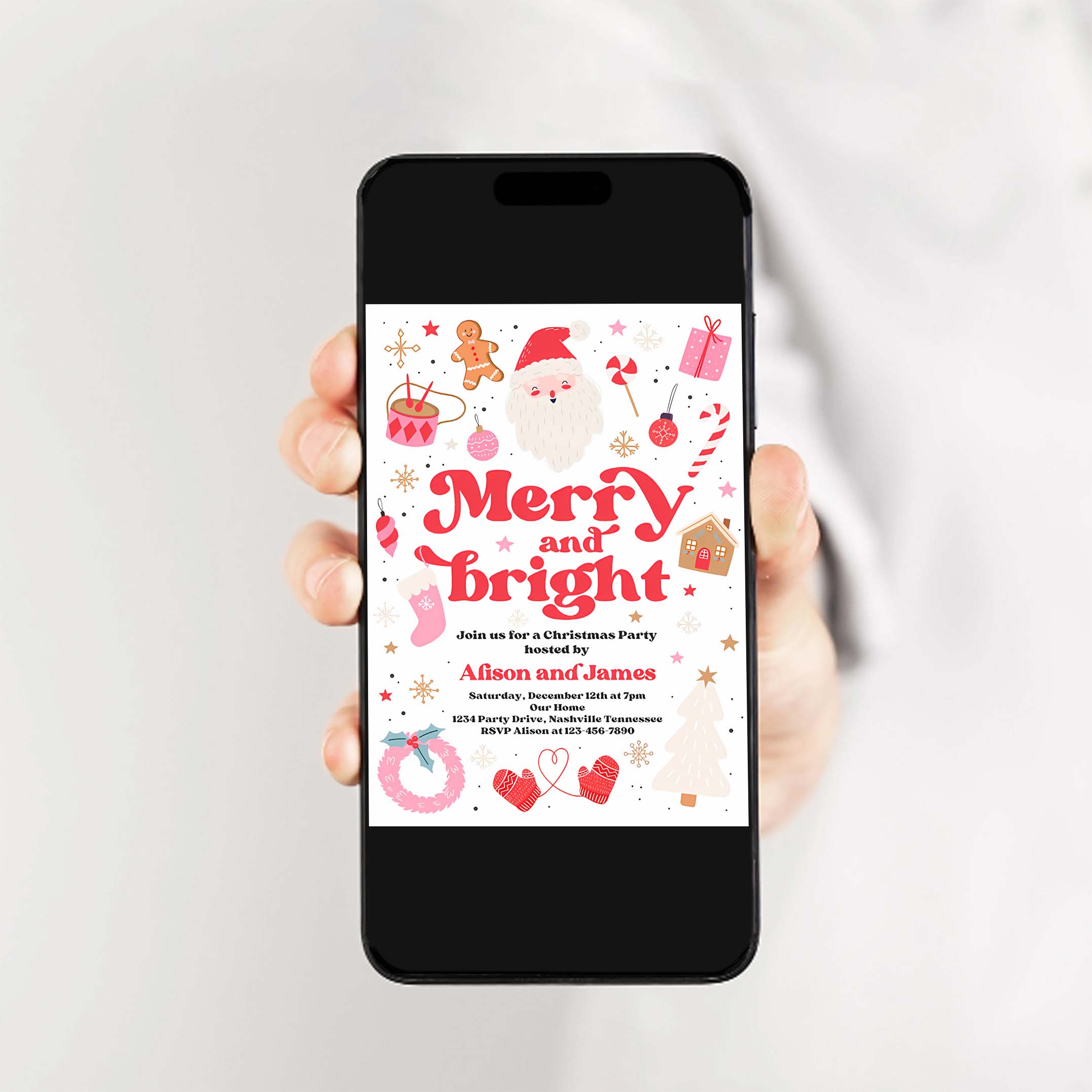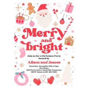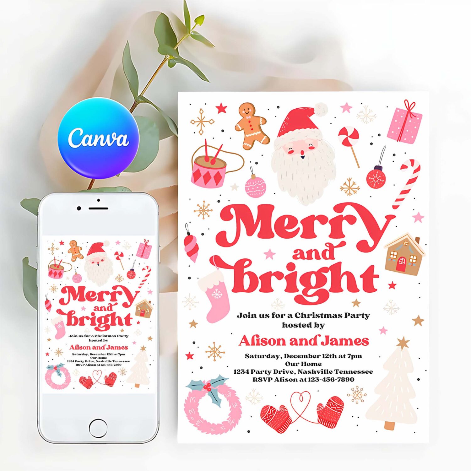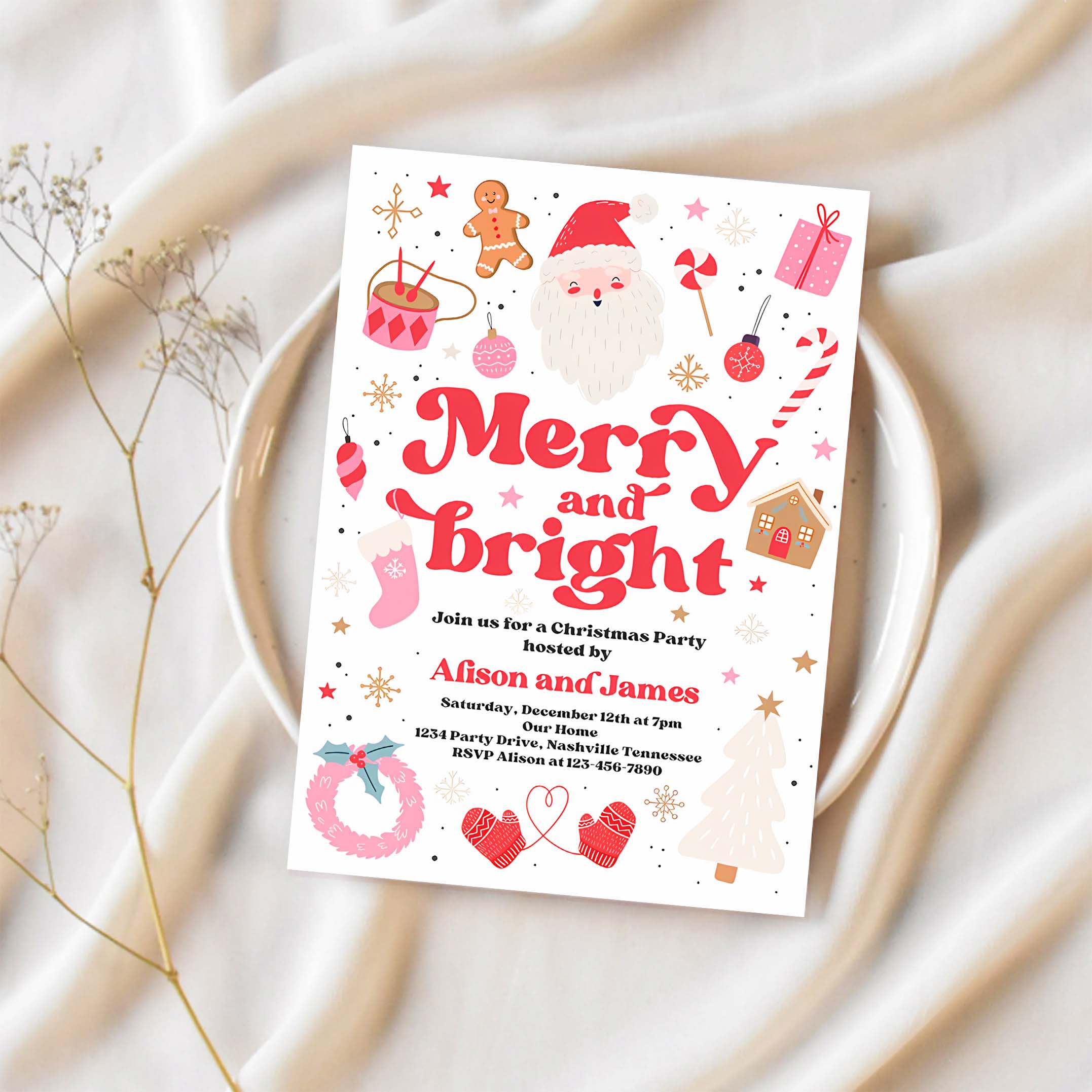 Merry And Bright Invitation, Merry And Bright Christmas Party Invitation Merry And Bright Holiday Party Invitation Santa Christmas Party