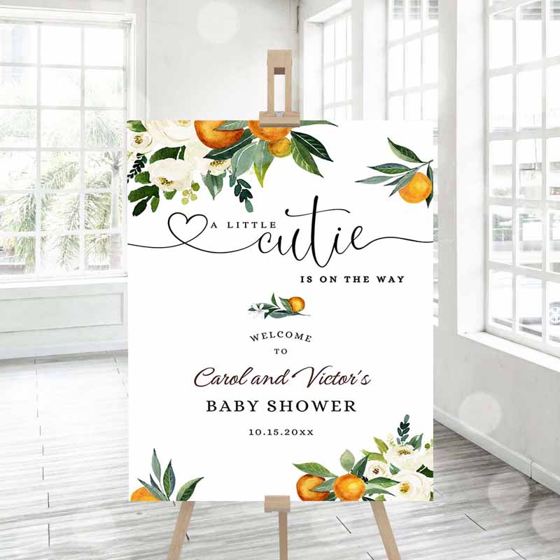 Baby Shower Invitation, Orange A Little Cutie is on the Way Baby Shower Sprinkle Invitation