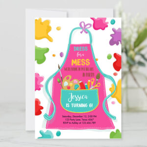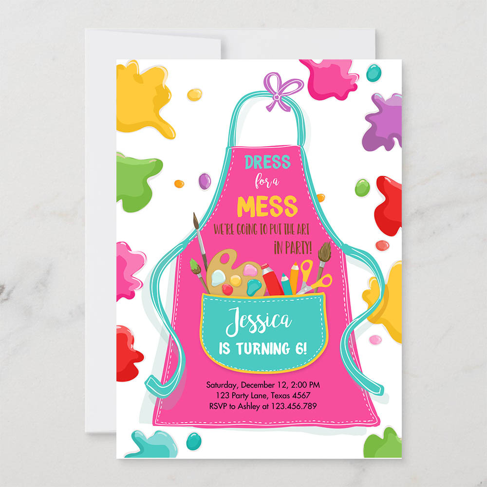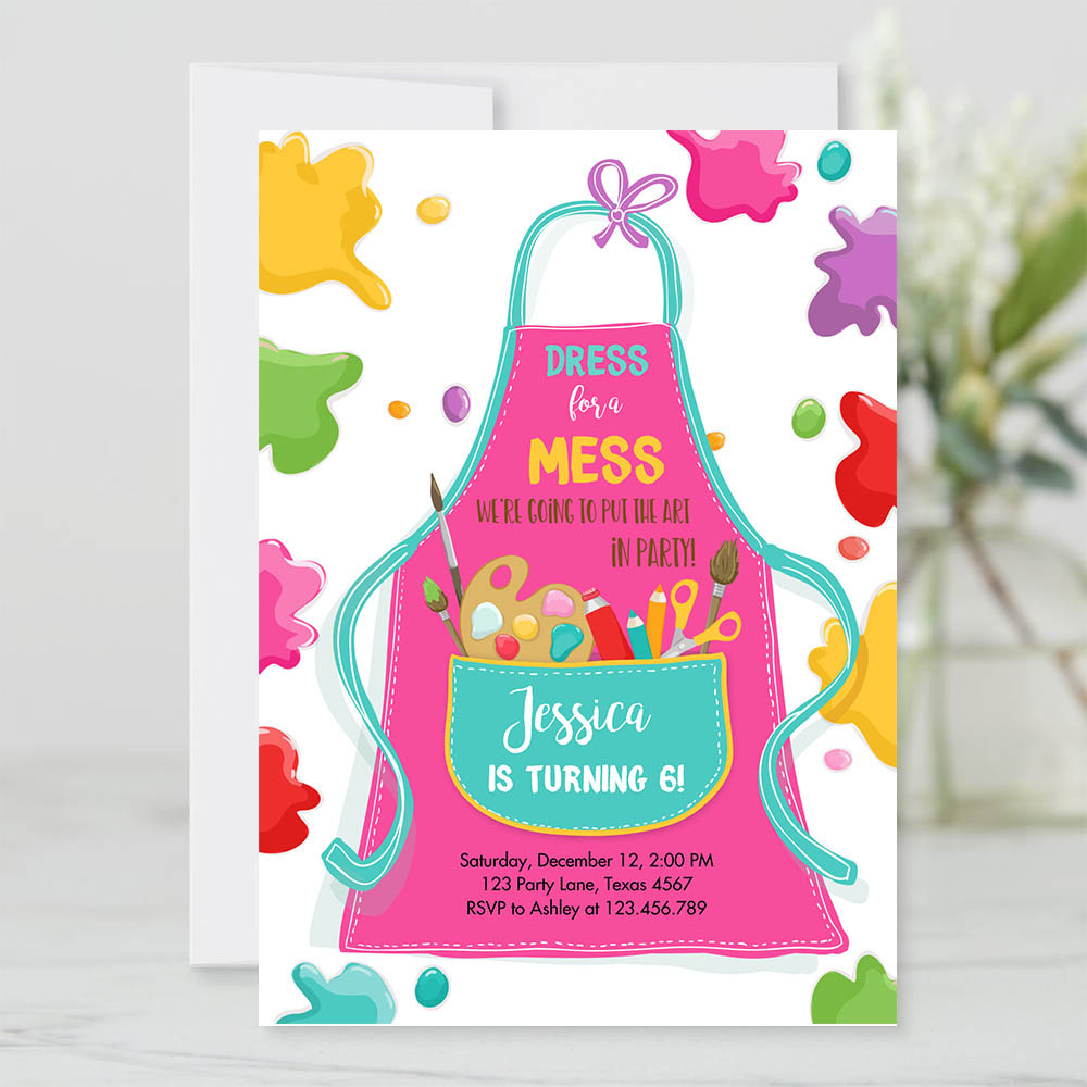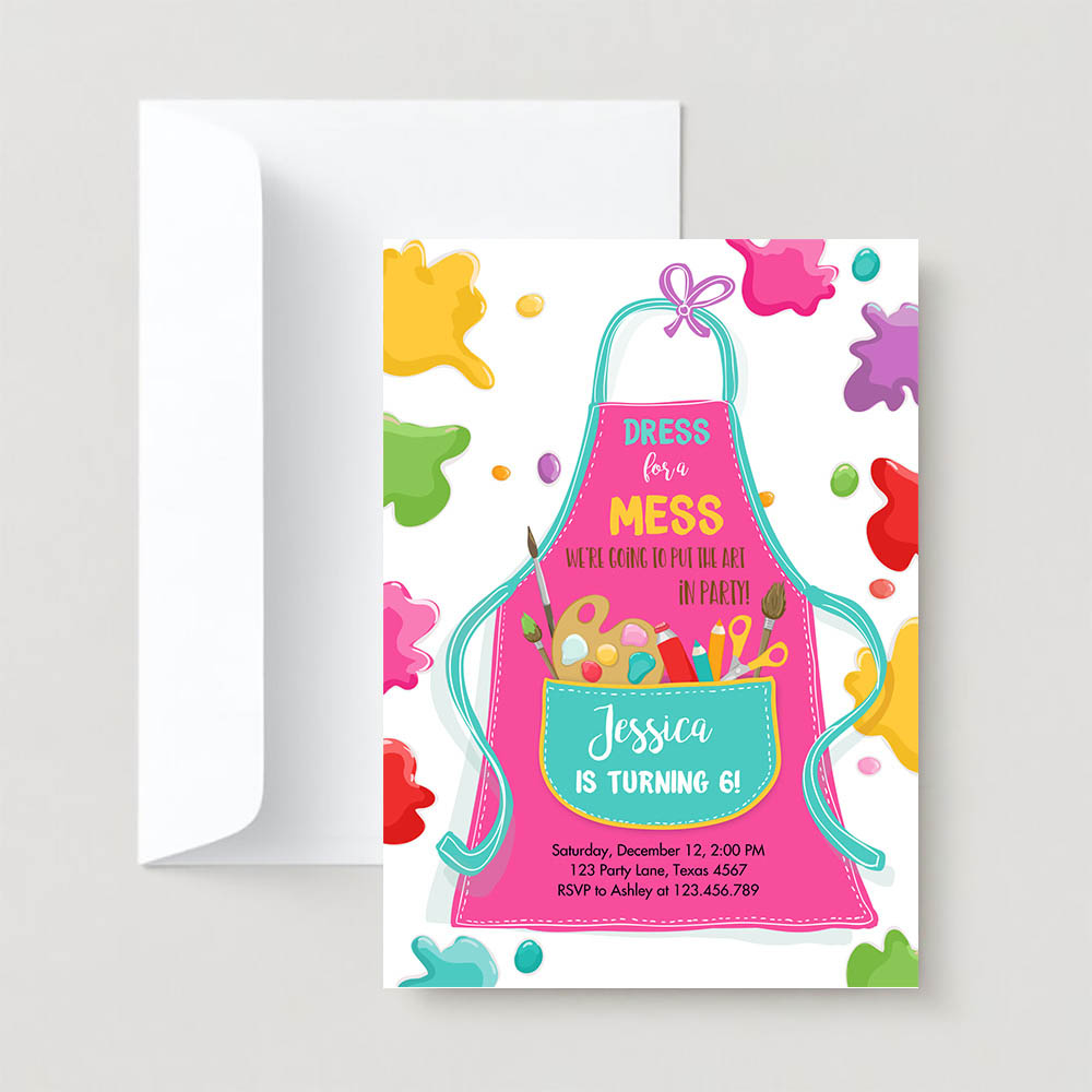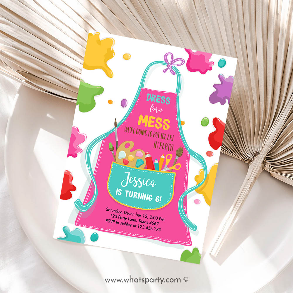 Painting Party Invitation Art Party, Birthday Invitation Girl Pink Paint Craft Invitation