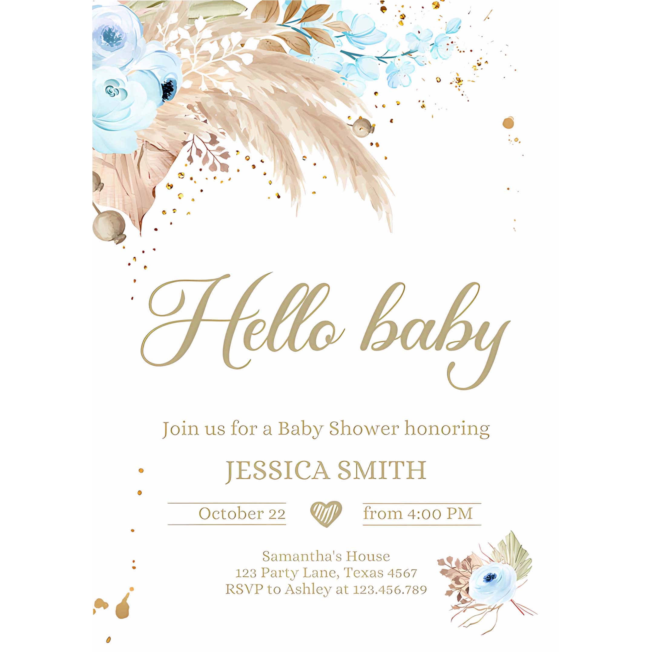 Boho Pampas Invitation, Pampas Grass Baby Shower Invitation