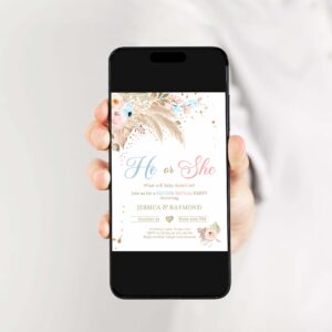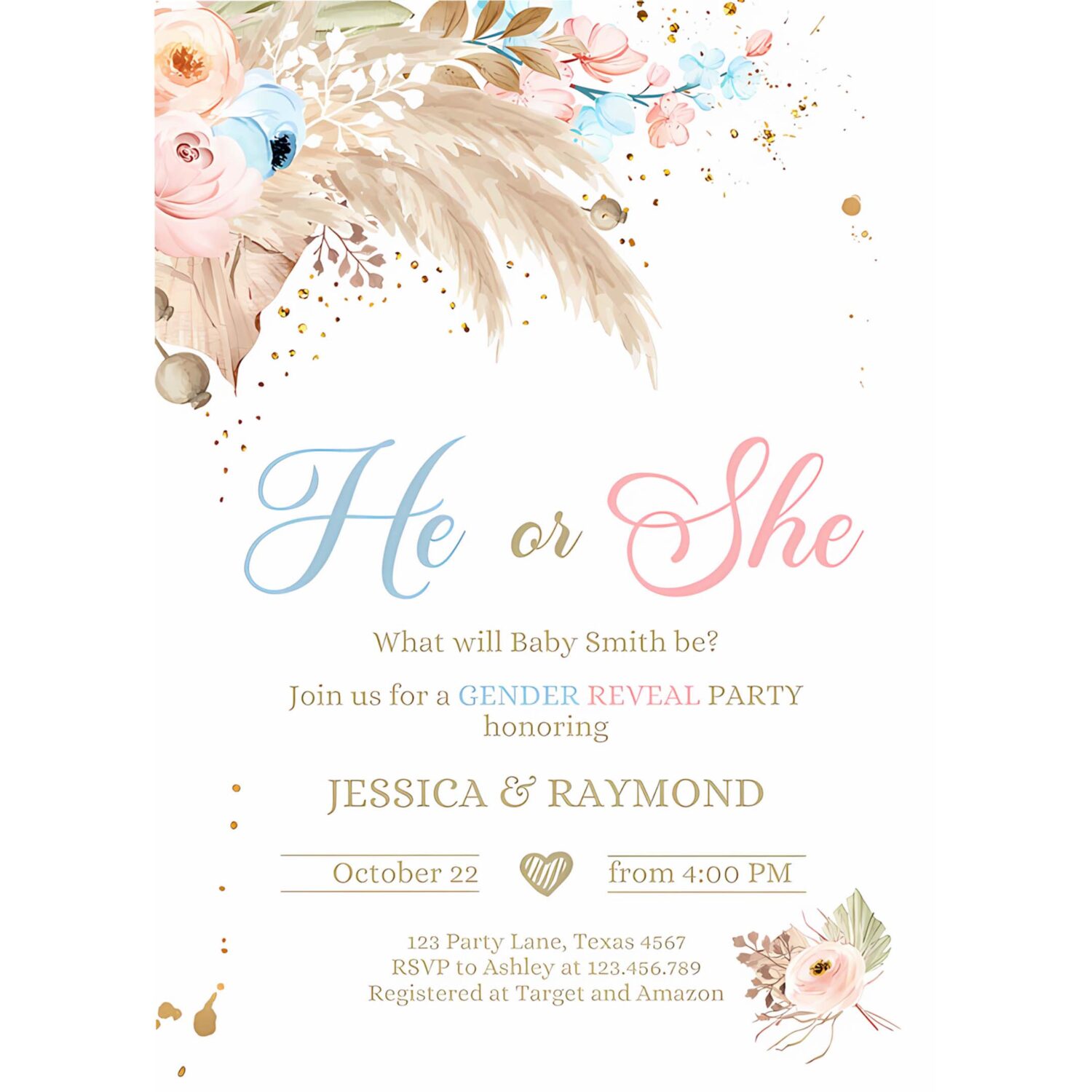 Boho Pampas Invitation, Pampas Grass Gender Reveal Party Invitation