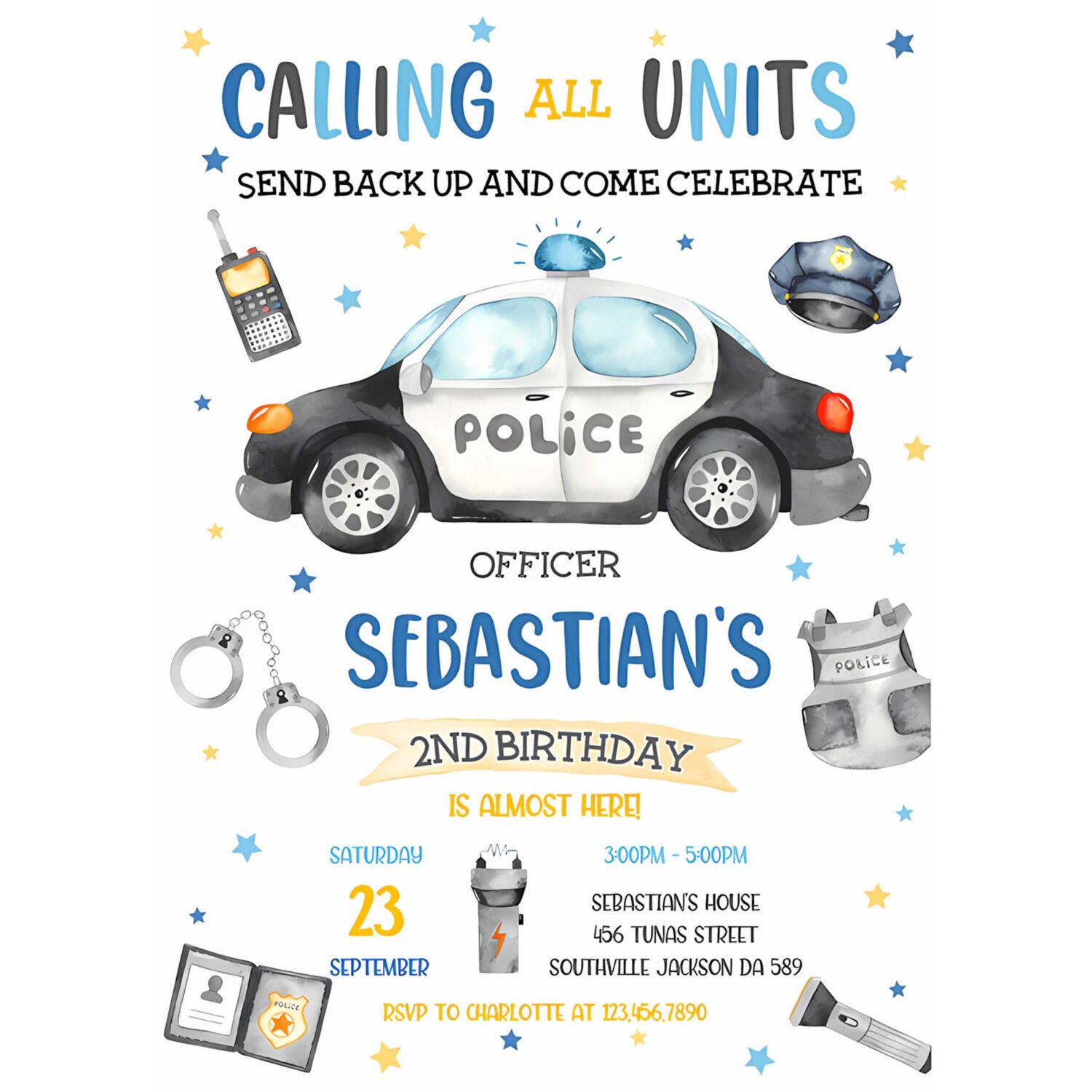 Police Invitation, Police Birthday Invitation template, Police Officer Invitation, Policeman Invitation, Police Invitation