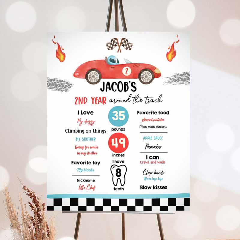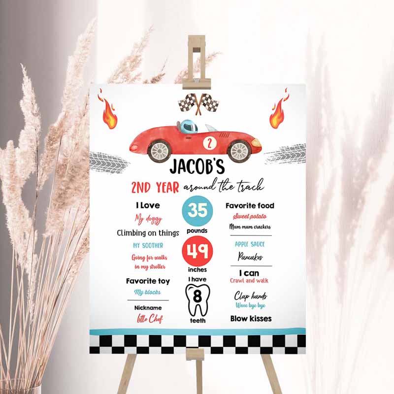Racing Racing Birthday, Milestones Sign 2nd Birthday, 2 Invitation