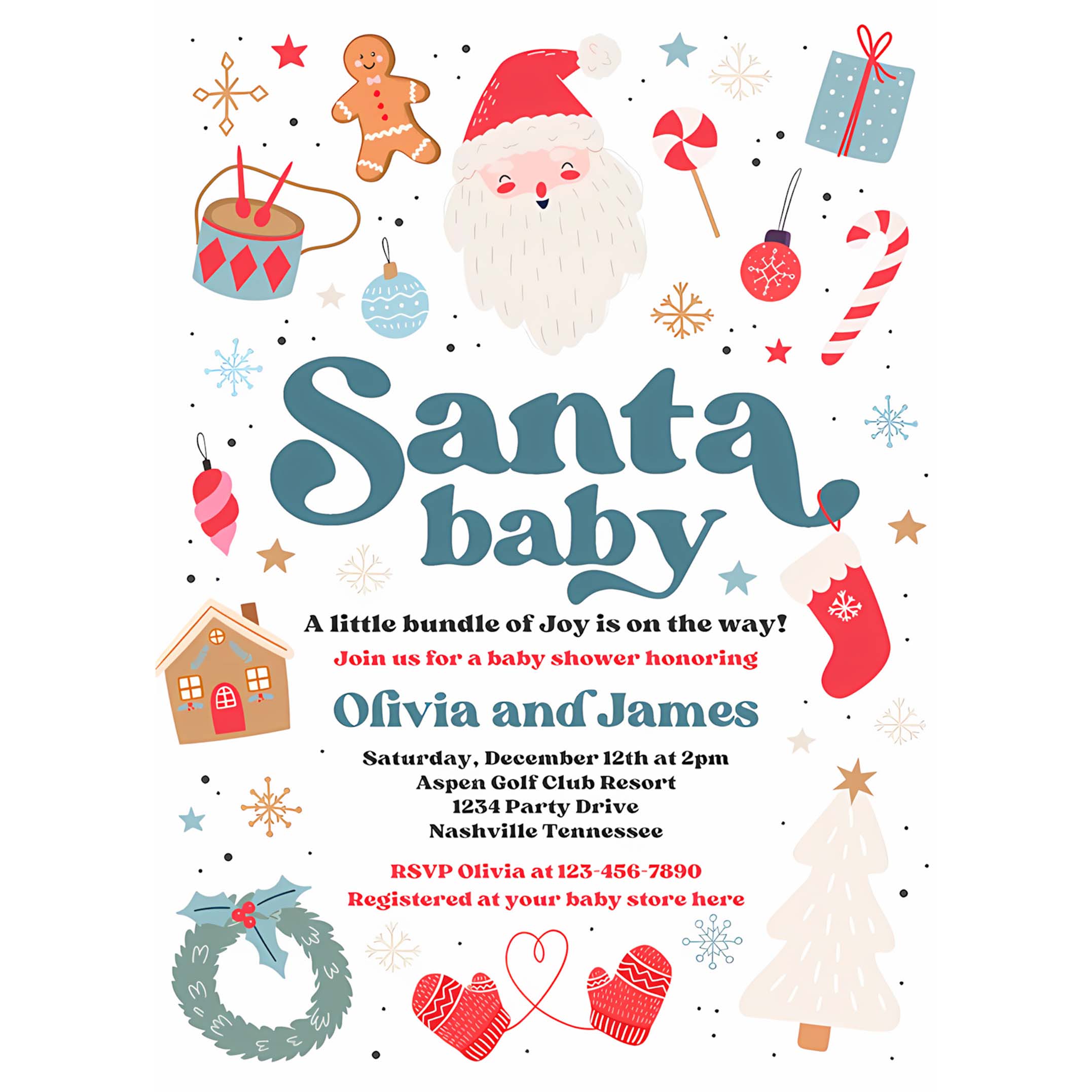 Santa Baby Invitation, Santa Baby Invitation Santa Christmas Baby Shower Invitation Santa Baby Shower Red And Blue Christmas Shower