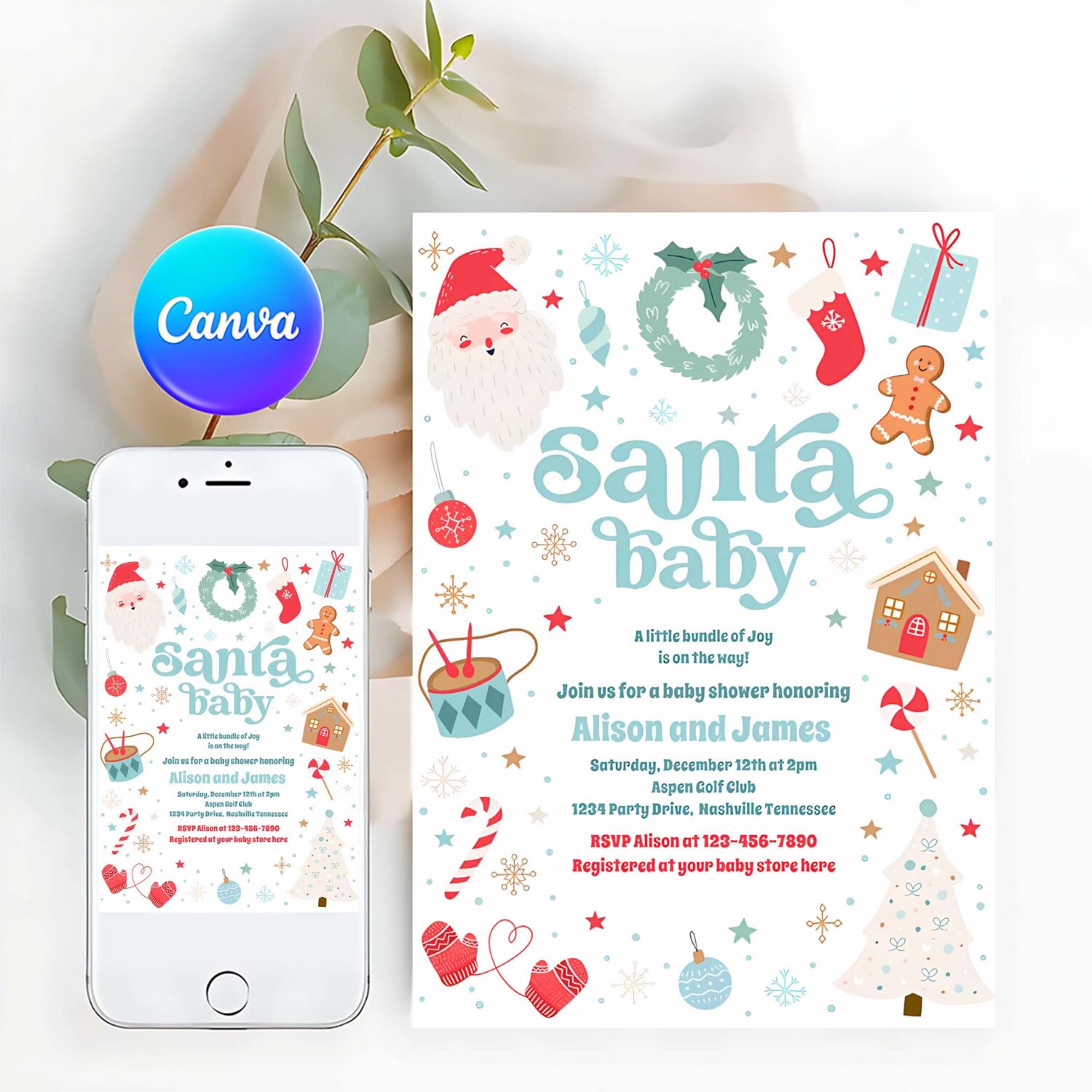 Santa Baby Invitation, Santa Baby Traditional Christmas Baby Shower Invitation