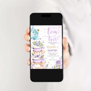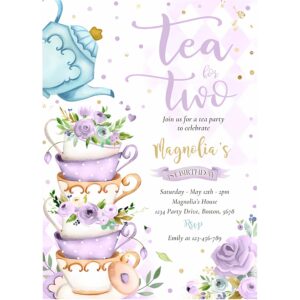 Tea For Two Invitation, Tea For Two Birthday Party Purple Floral Tea Party Invitation