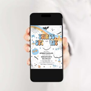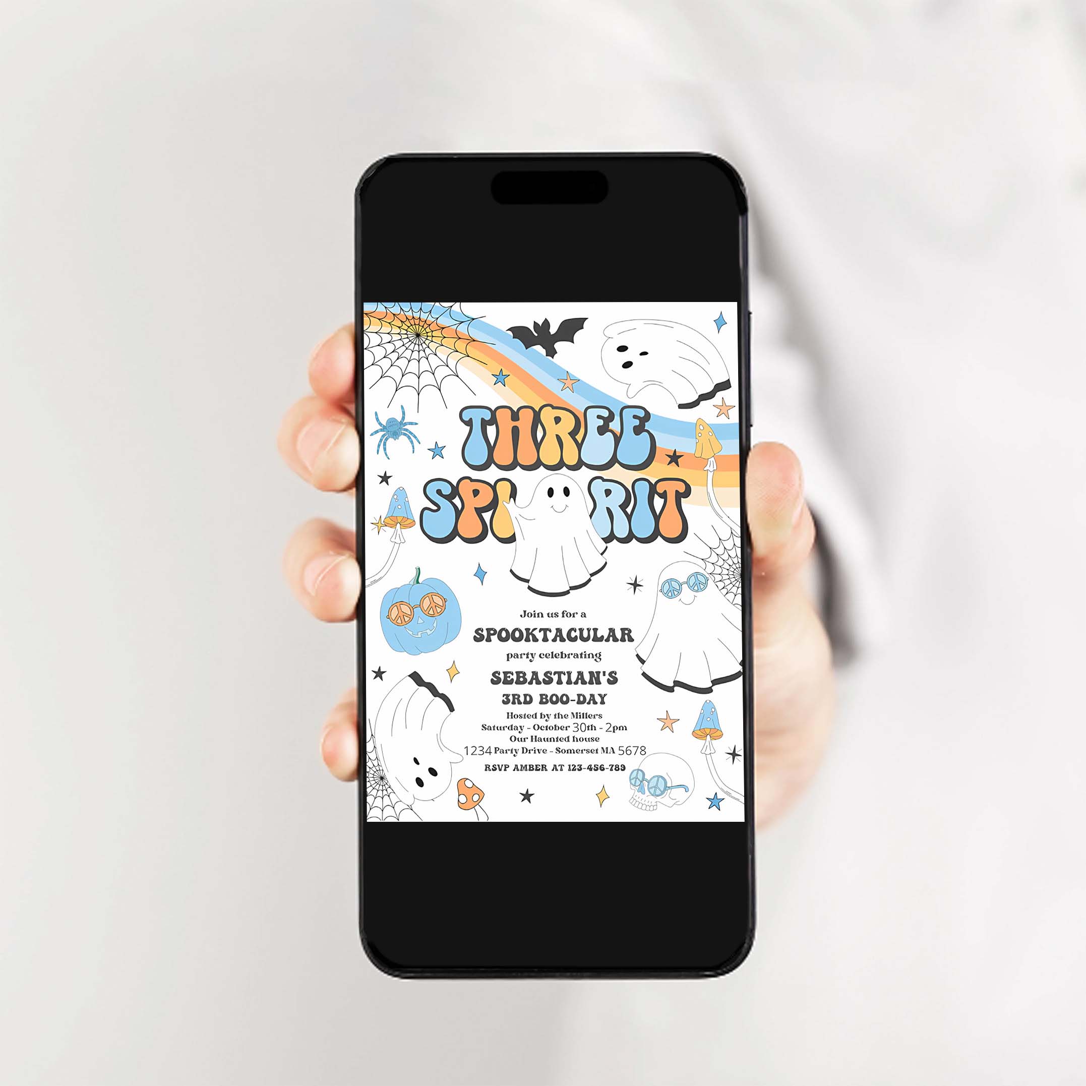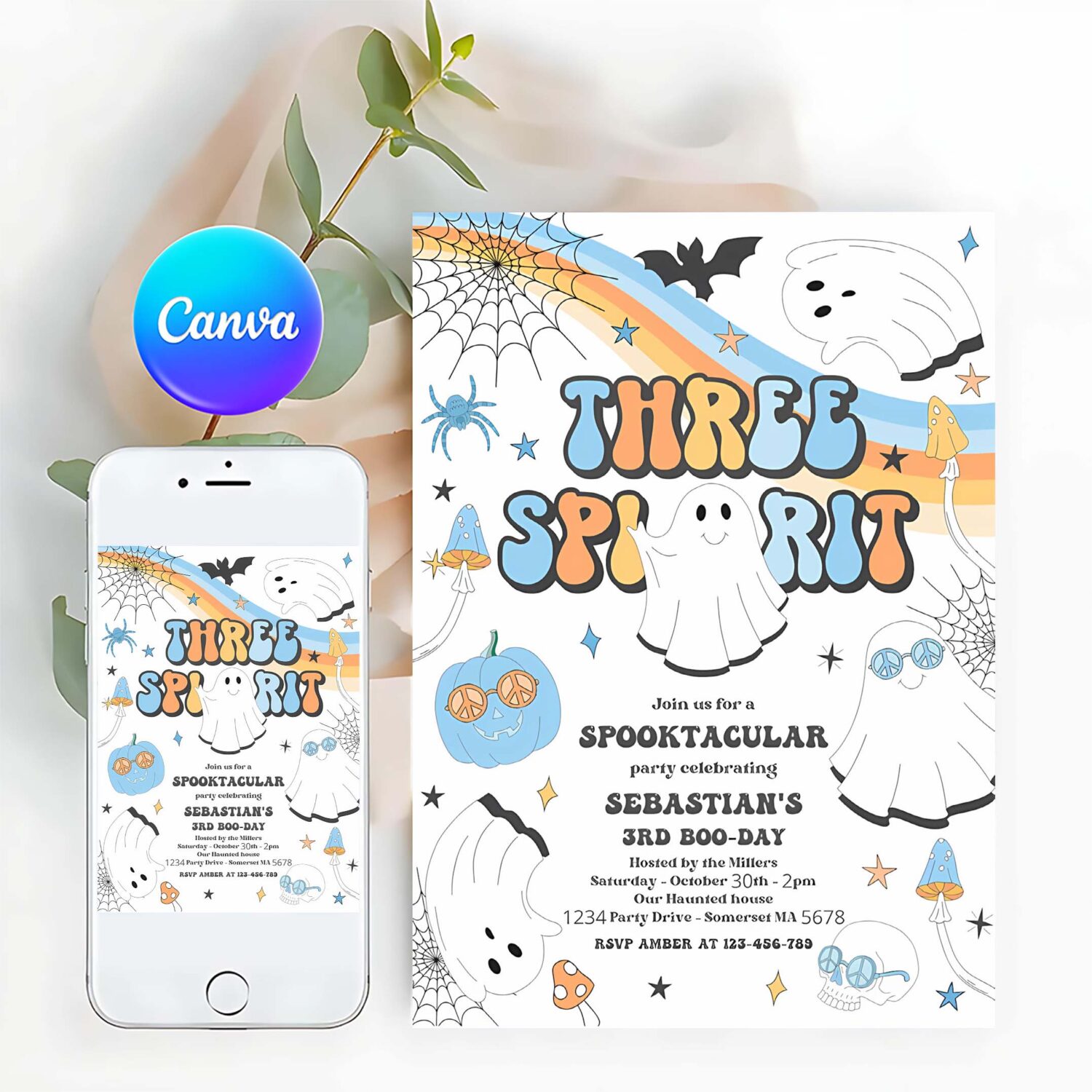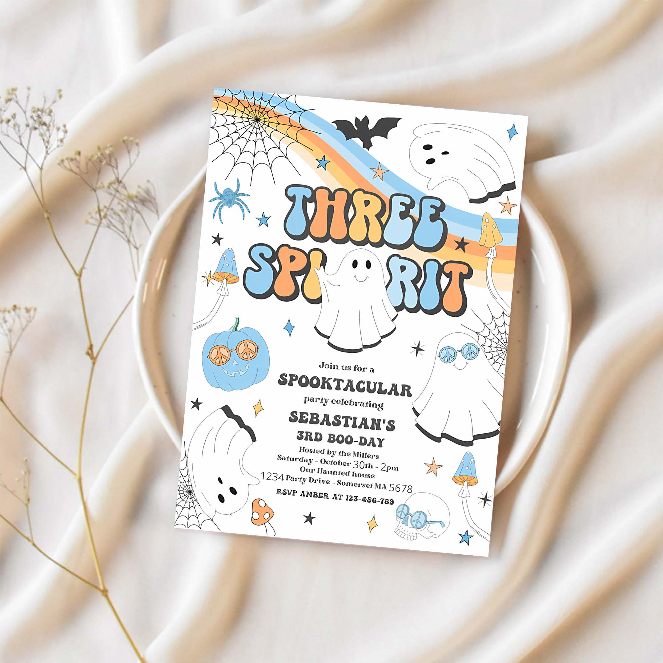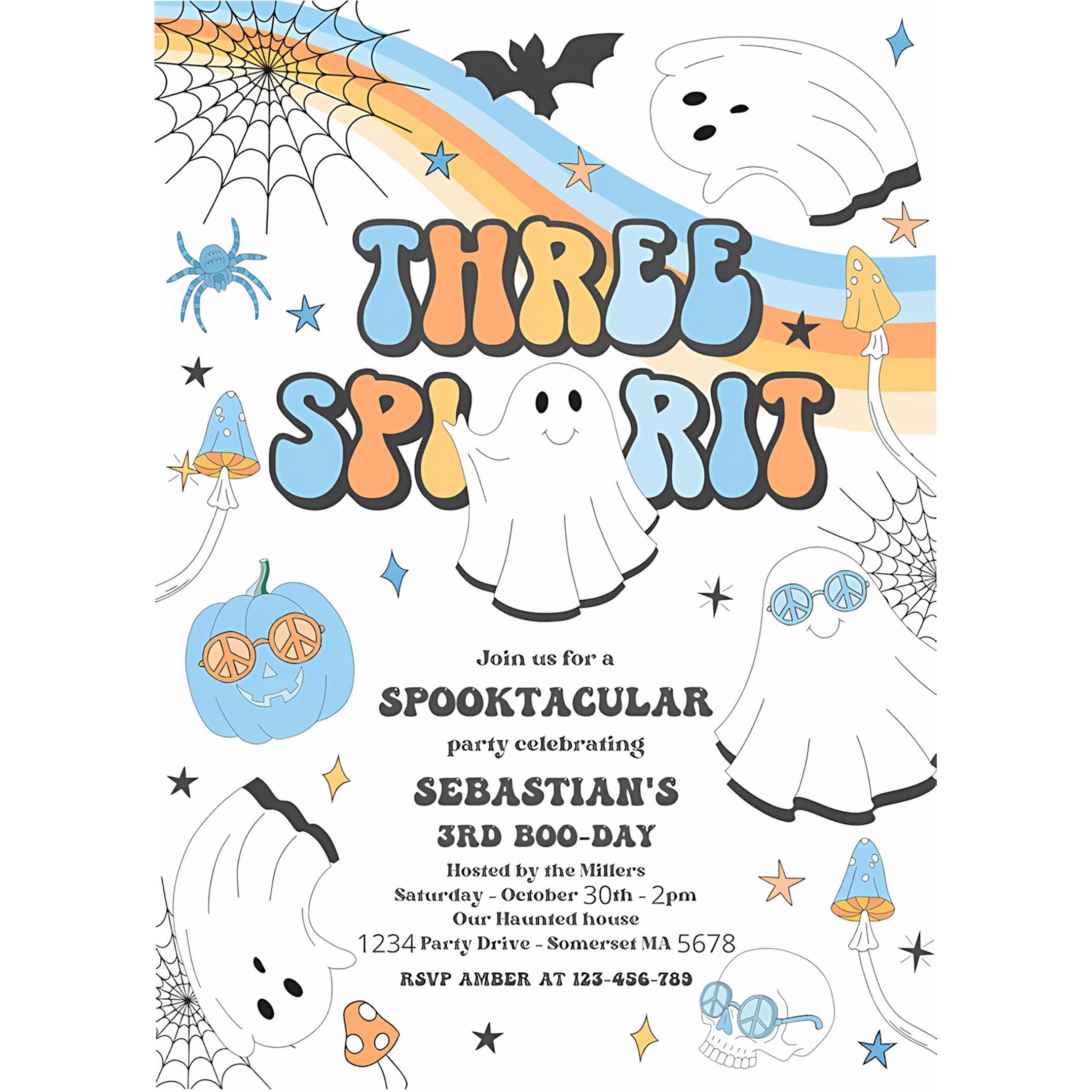 Three Spirit Invitation, Three Spirit Halloween Ghost 3rd Birthday Invitation Retro Groovy Ghost Birthday Hippie Halloween Party