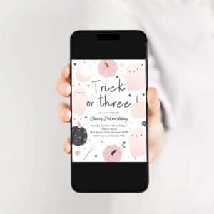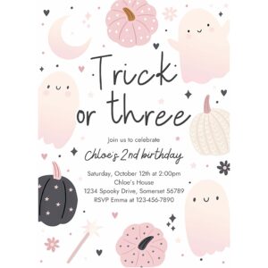Trick Or Three Invitation, Trick Or Three Halloween Ghost 3rd Birthday Party Invitation Boho Groovy Ghost Halloween Birthday Party Invite