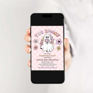 Two Spooky Invitation, Two Spooky Halloween Ghost 2nd Invite Retro Groovy Pink Ghost Halloween Birthday Party