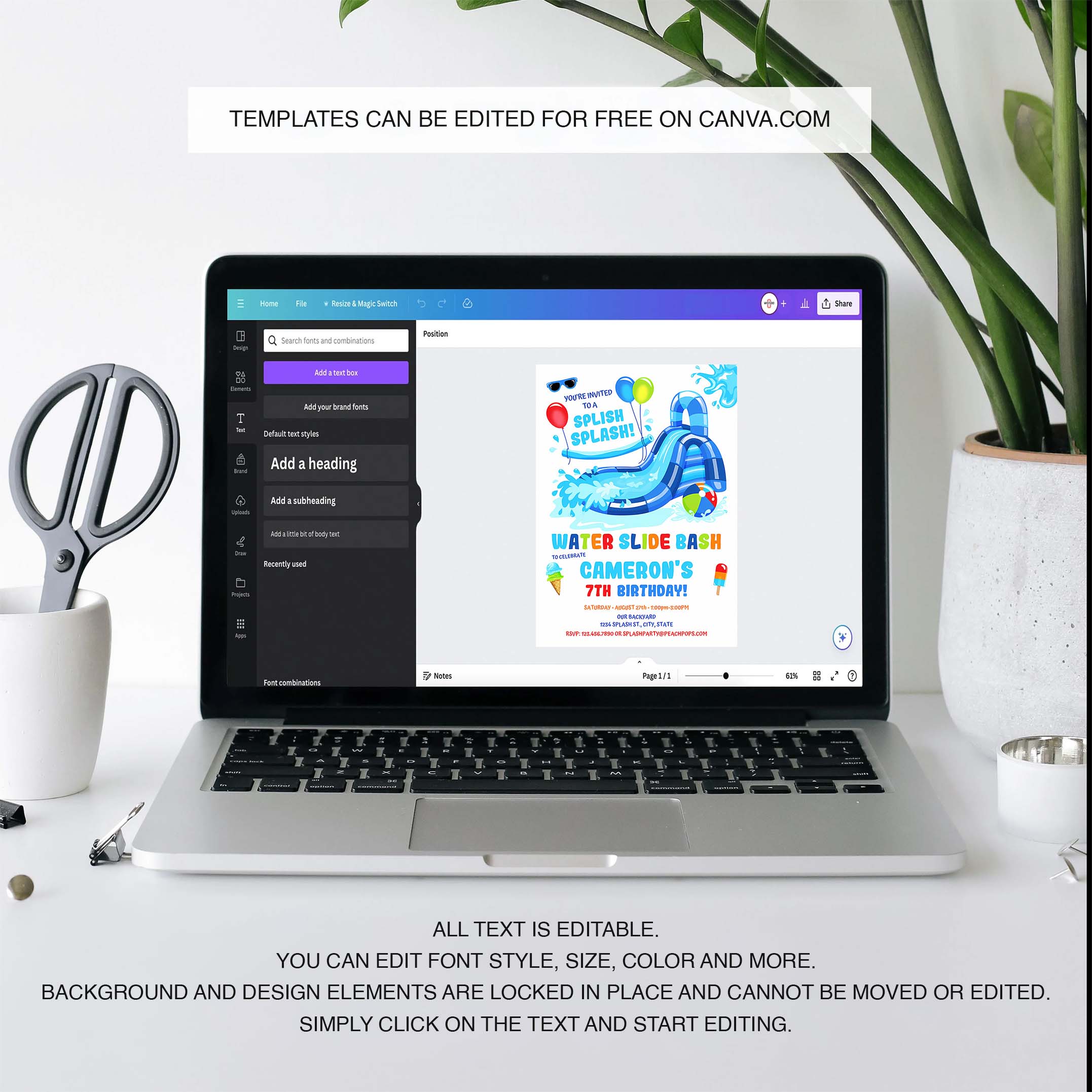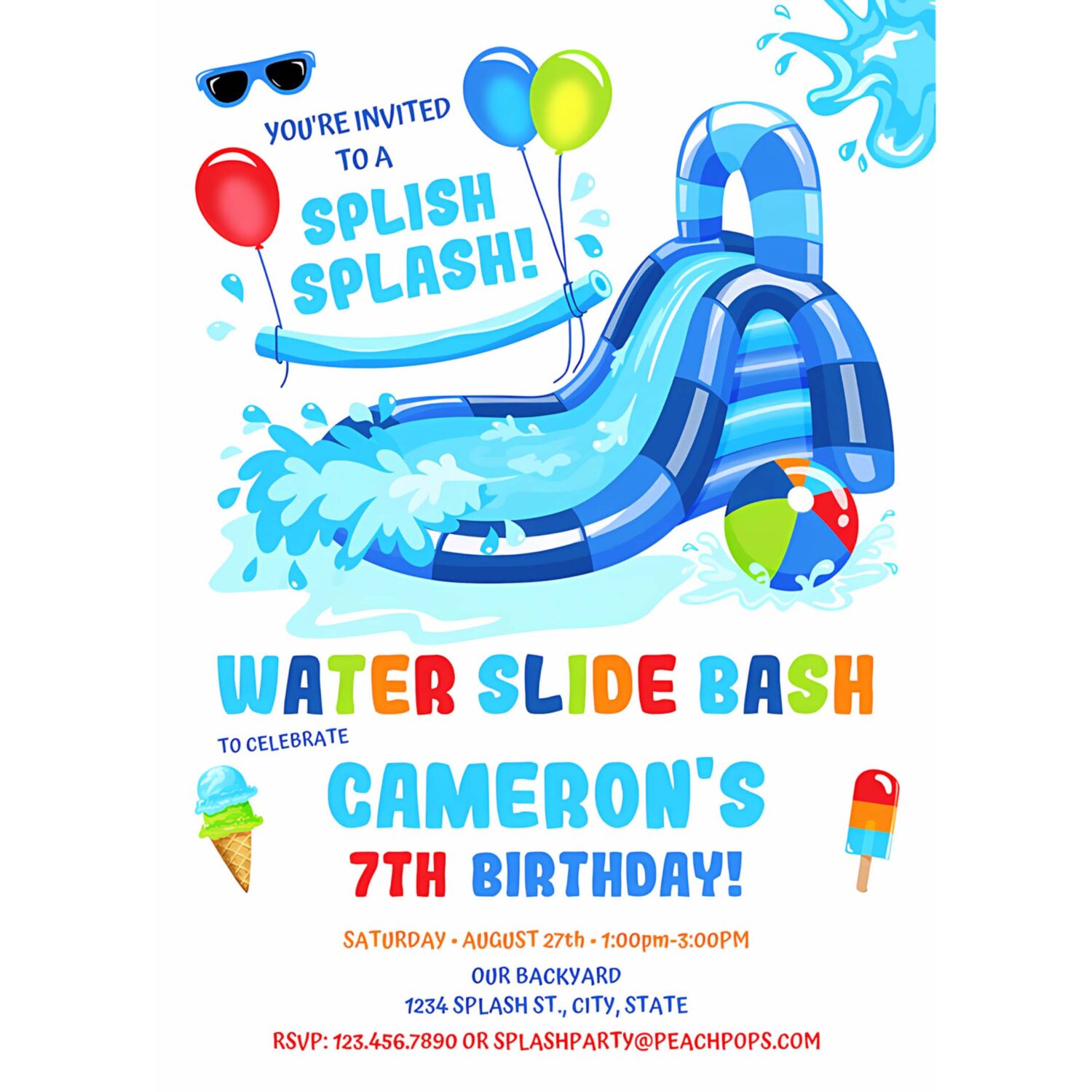 Water Slide Invitation, Water Slide Birthday, Splash Party Invitation