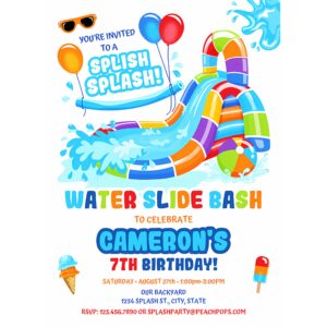 Water Slide Invitation, Water Slide Birthday, Splash Party Invitation