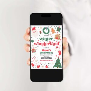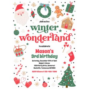 Winter Invitation, Winter Wonderland Red Christmas Birthday Party Invitation
