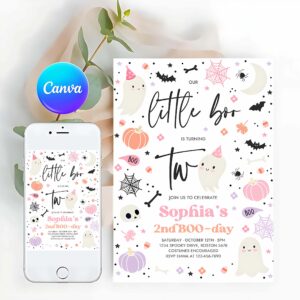 Little Boo Invitation, Little Boo Halloween Ghost 2nd Birthday Party Invitation Boho Groovy Ghost Halloween Birthday Party InviteEditable Little Boo Halloween Ghost 2nd Birthday Party Invitation Boho Groovy Ghost Halloween Birthday Party Invite Instant Download 45R